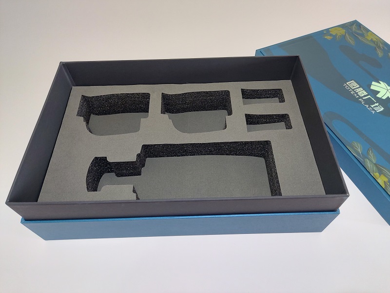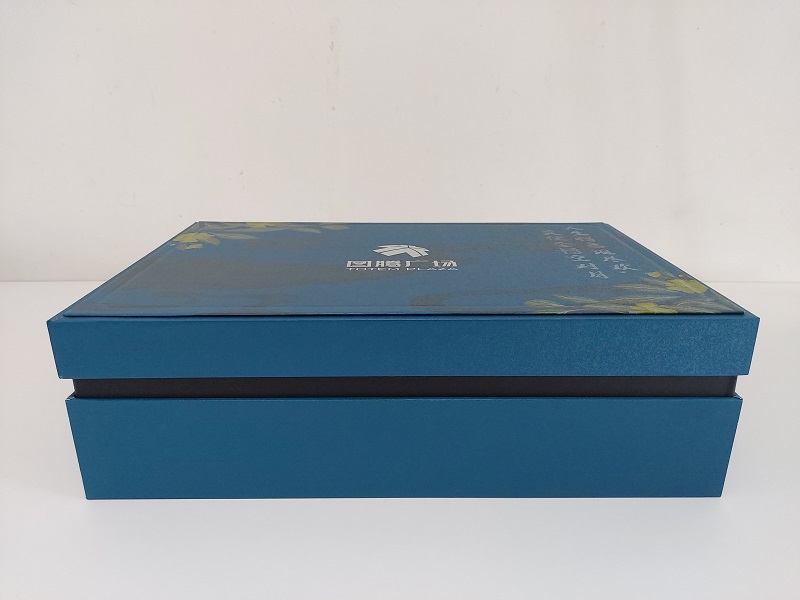 此款白酒禮盒定製采用藍色珠砂紙,紙質柔韌度較好,高貴典雅的藍色,手感豐潤,肌理獨特,具有防汙、防潮、耐折等特性。在前期與客戶溝通交流之後應客戶需求,需要打實物樣品由客戶驗收後才能大貨生產,但此款藍色珠砂紙比較小眾廠家沒有現貨,需在提前定製,但做包裝行業的人都知道,同一廠家不同批次的紙也可能有色差,美印達包裝廠考慮到可能這個色差問題會給客戶帶來較差的體驗感,所以在打樣時就定製所有紙張,規避紙張自身色差問題。