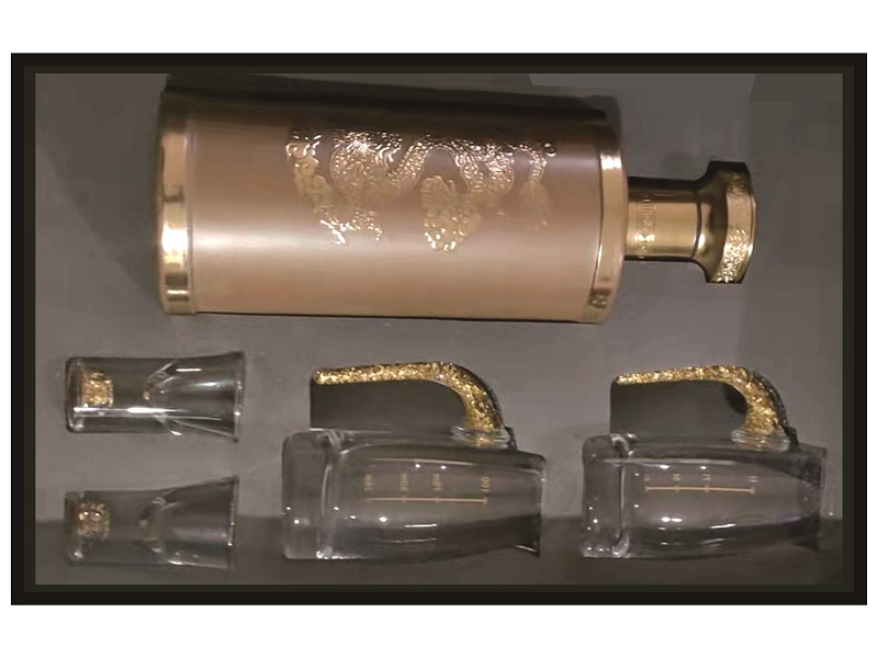 酒類禮品盒定製在強調包裝的外部美觀的時,同樣重視禮品盒內的產品和空間,盒內空間設計和包裝細節也對消費者產生重要的影響,漂亮的外觀具有欣賞性,吸引消費眼球,而禮盒內部擺放及空間卻給以美好難忘的體驗感。如上圖樣,平放規劃放置瓶酒,二個量杯和二個小酒杯,酒杯與酒瓶采用帶有高級感的金色,金色手柄與玻璃的完美搭配具有足夠的張力,瞬間將平凡的色彩組合轉變為卓越亮眼的色彩。吸引客戶眼球,增強產品的印象。