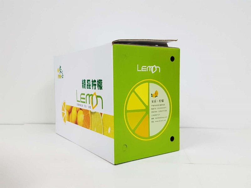 在檸檬包裝盒製作選用材料之前,了解檸檬是一種比較容易保存的水果,有檸檬果皮保護,果實酸性環境更能保質,不容易壞,所以對檸檬包裝製作中也不必特殊工藝的處理,成都水果包裝盒常做的瓦楞彩盒也是檸檬包裝盒首選材質。(如圖所示)