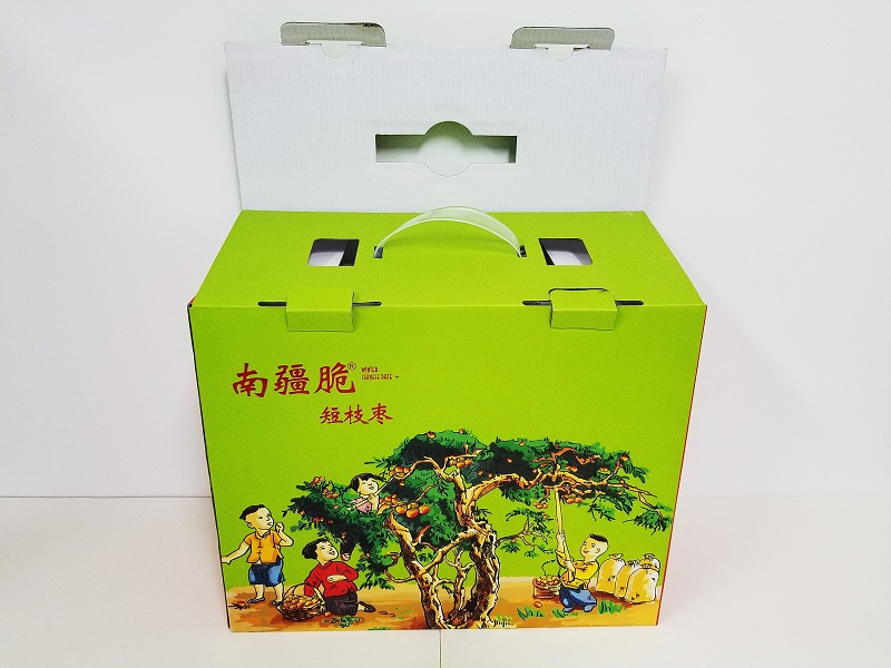 關於南疆脆棗禮品包裝盒製作類型多采用天地蓋和平口箱式的,這兩種製作盒型比較適合堆碼存放及物流運輸,下麵美印達包裝廠著重介紹平品箱式的棗子包裝盒製作。