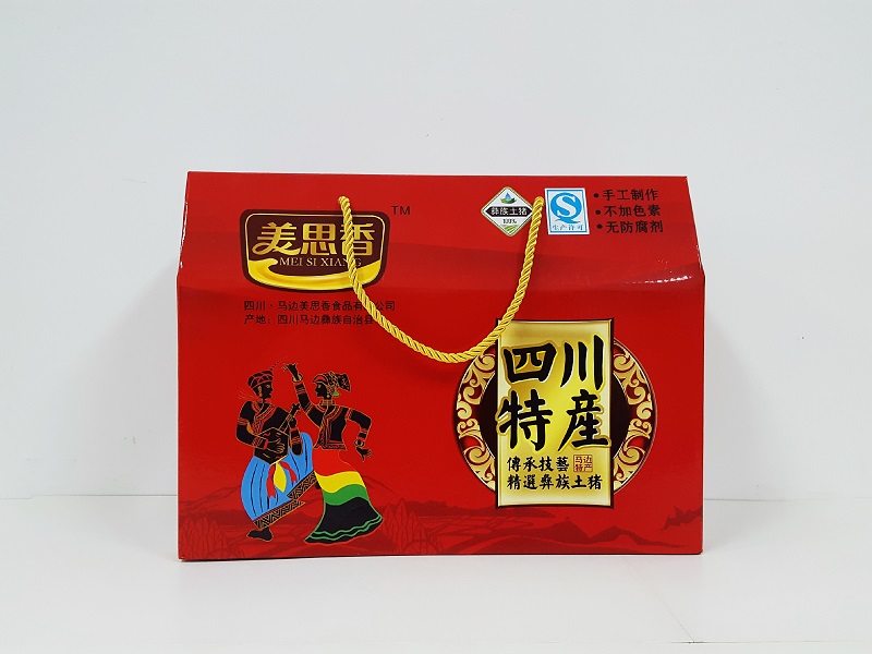 成都包裝廠:臘肉香腸包裝盒3至10斤裝的尺寸供大家參考,臘肉香腸的包裝設計也通常融入了地方文化元素。包裝上常印有當...