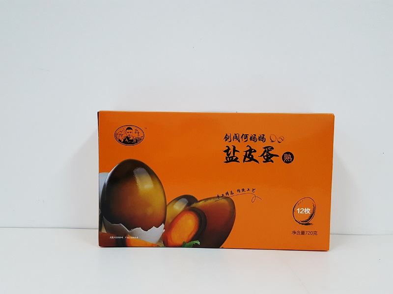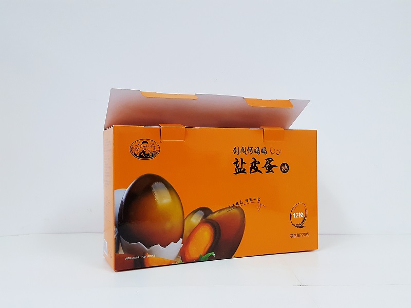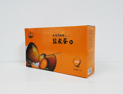成都鹽皮蛋包裝盒製作1、材質:250克灰底板對裱;2、工藝:四色印刷、亮膜
