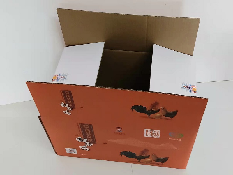 茂縣土雞包裝箱定製1、材質:300克灰紙裱BE瓦楞;2、工藝:印刷、啞膜、裱瓦
