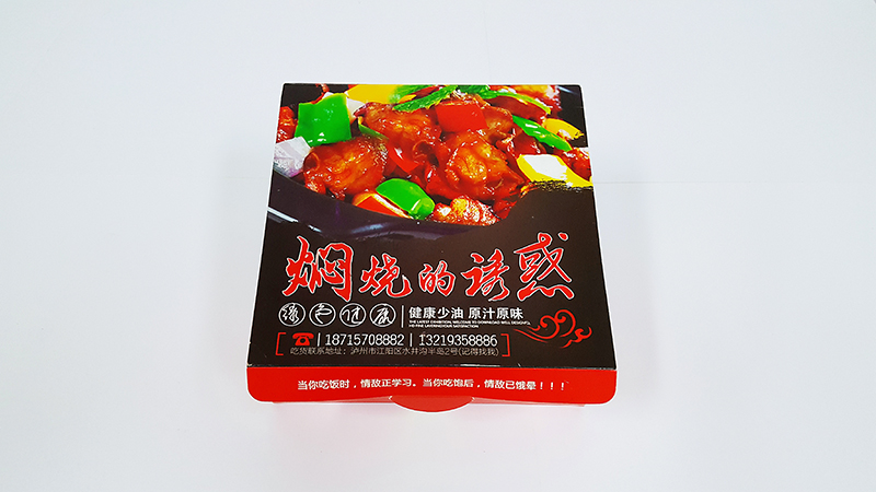 打包外賣盒定做1、材質:300克白卡;2、工藝:印刷